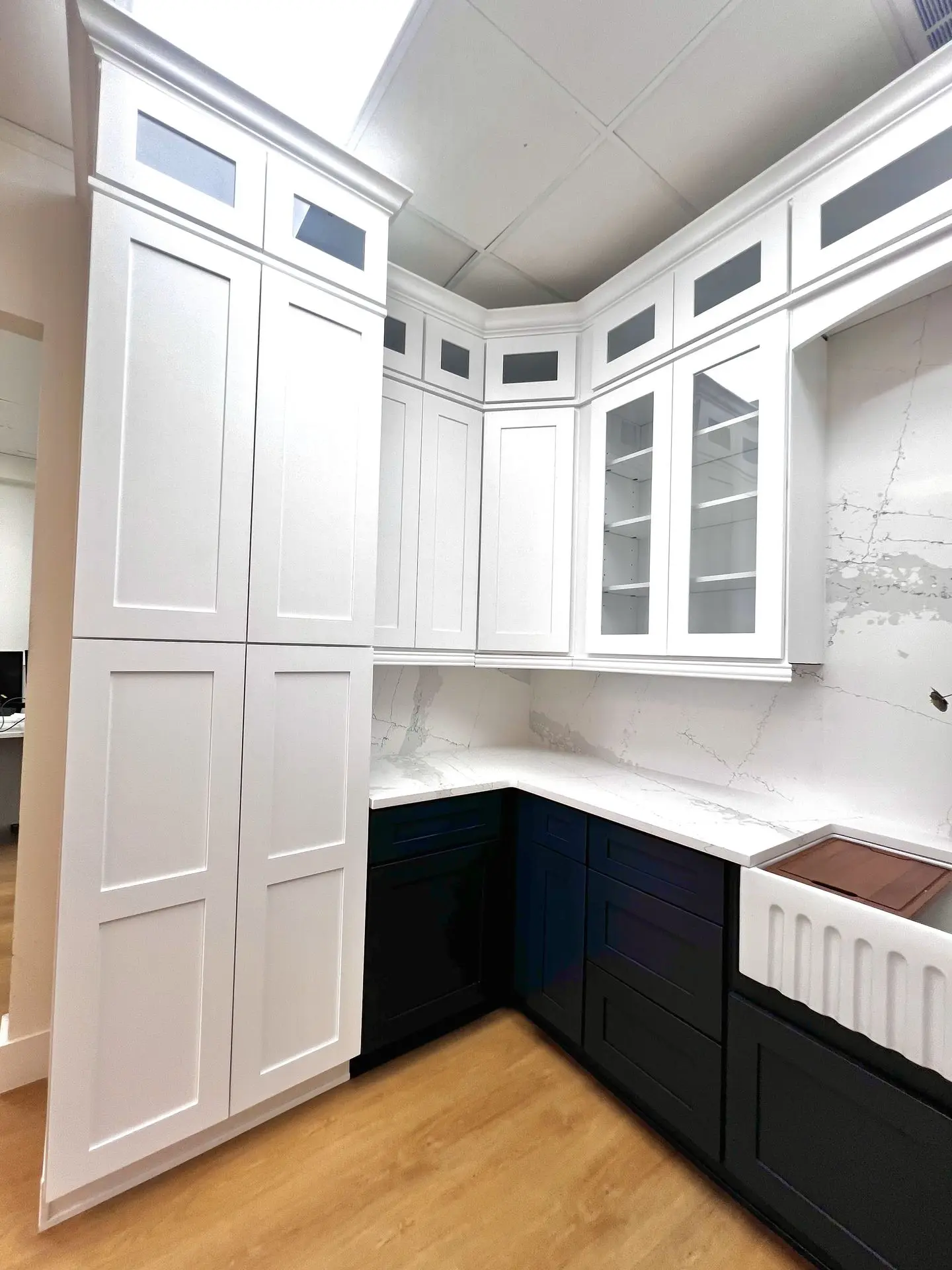 Full overlay 3/4 inch thick with 5-Piece birchwood front door & drawer with MDF center panel.