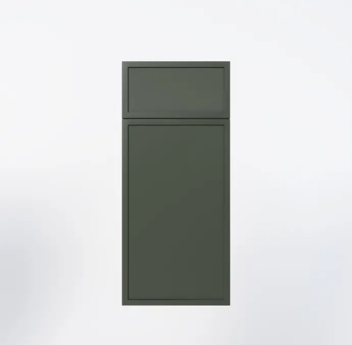 Full overlay door and drawer front constructed from 3/4" thick HDF in a 5-piece shaker style, featuring an MDF center panel for enhanced stability and a smooth, consistent finish.