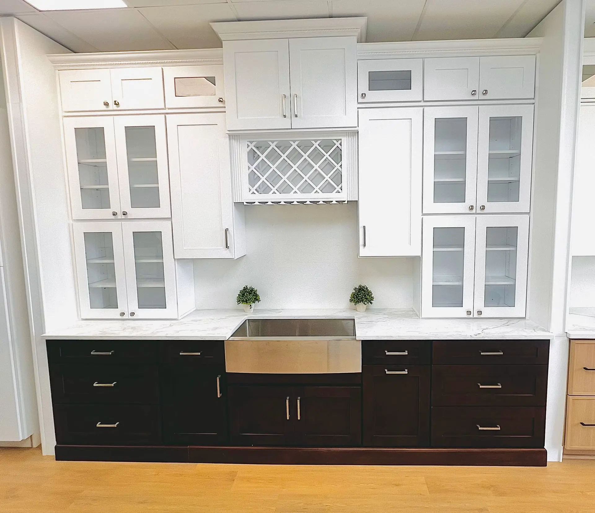 Full overlay 3/4 inch thick with 5-Piece birchwood front door & drawer with MDF center panel.